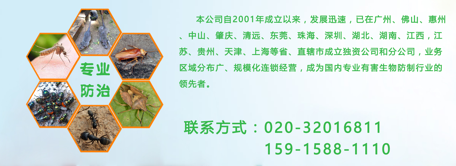 廣州億康環(huán)境科技有限公司專業(yè)從事有害生物防制、空氣治理、增香除味、清洗保潔、衛(wèi)生防疫消毒。本公司自成立以來,發(fā)展迅速,業(yè)務(wù)區(qū)域分布廣、規(guī)模化連鎖經(jīng)營(yíng),成為國(guó)內(nèi)專業(yè)有害生物防制行業(yè)的領(lǐng)先者。